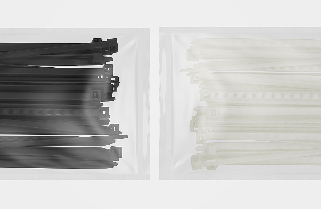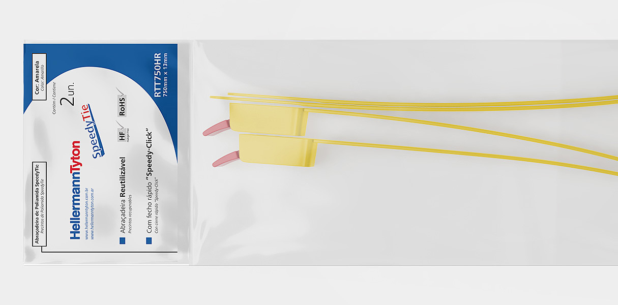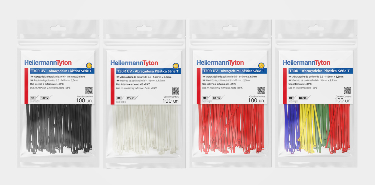 Imagens de embalagens tipo blister, desenvolvidas totalmente em 3d, para a linha de abraçadeiras HellermannTyton.
