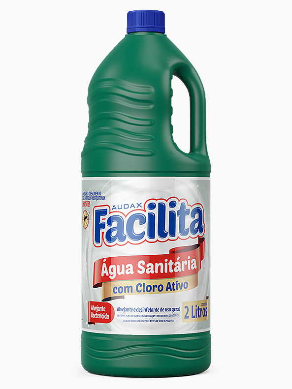 Imagem de frasco de água sanitária Facilita, desenvolvida totalmente em 3d, para Audaxco.