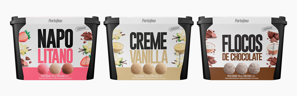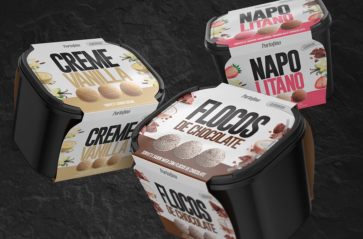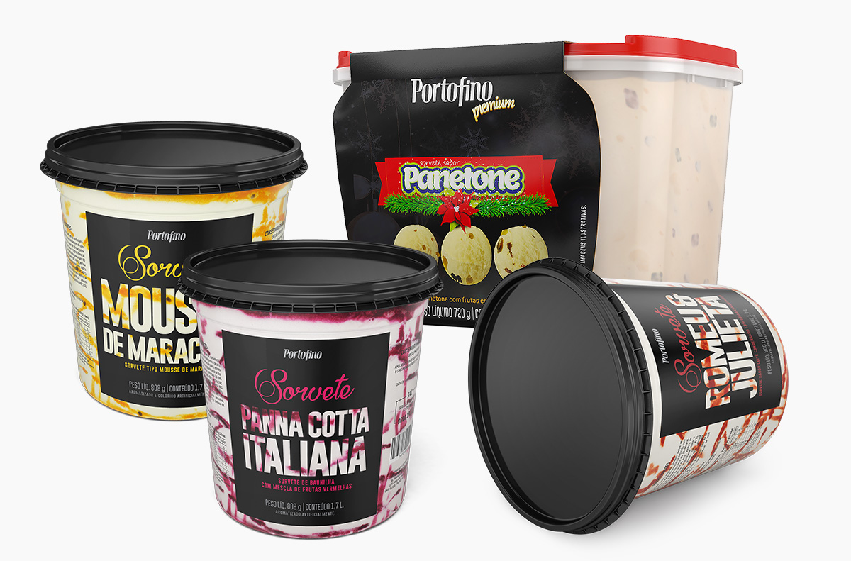 Imagens de potes de sorvetes, desenvoldidas totalmente em 3d, para a Portofino.