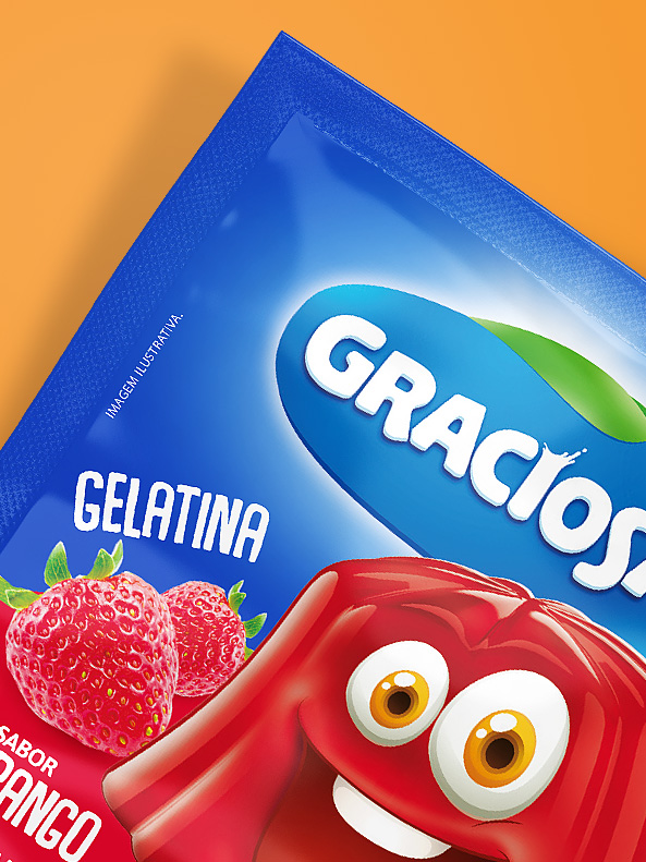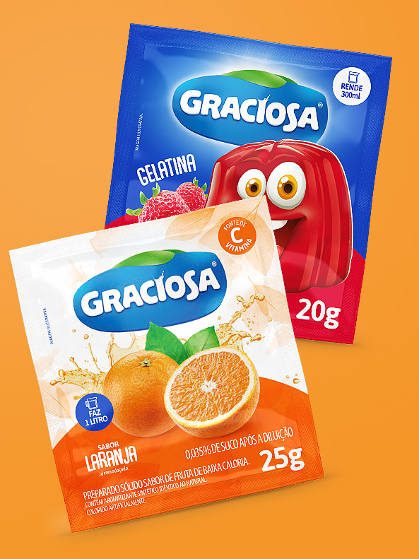 Imagem de sachê de refresco em pó, desenvoldida totalmente em 3d, para a marca Graciosa.